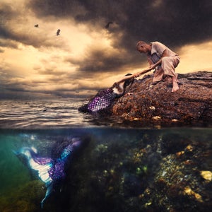 “This has been an idea that Cristina and I began collaborating on a couple of years ago. Through her friendship I have developed greater understanding and empathy for our planet and what plagues it. This image shows beauty in darkness - a mermaid caught in a net, and someone willing to reach in and help.”
