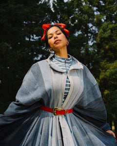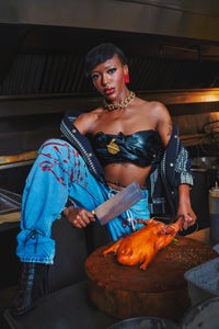 “This photograph was created in San Francisco Chinatown in collaboration with fashion designer Brandin Vaughn, ahead of his KarlArtSF runway debut. For me, it represents the joyous intersection of cultures, where fashion, food, and history & different ethnicities coexist in the same space. Chinatown kitchens carry generations of knowledge, labor, and preservation, and I wanted to honor that lineage while placing it in a contemporary fashion context. Her gaze and grip speak to power and autonomy. In a traditionally male-dominated kitchen, she stands fully in control — feminine, grounded, and unapologetic. This image is not about provocation, but about presence: who holds space, who holds craft, and who gets to be seen."