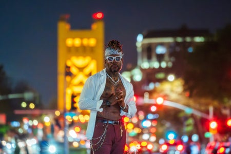 “My friend, Rickey, invited me on a portrait shoot with his friend, Anthony, in downtown Sacramento one night. This shot was on our walk back to the car and I just thought the scene looked great especially with all the bokeh in the background with Tower bridge.”