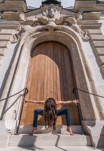 The yoga series began almost by accident. “In 2013, I was invited to teach photography on cruise ships, which became my ticket to explore 85 countries,” Willmore recalls. “One day, my wife Karen casually asked me to take a picture she was going to text to her sister, and she just happened to spring into a yoga pose with a temple in the background.”