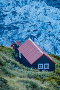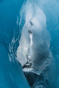 A few other items that help me get the shots I am after when on a glacier include some trusty crampons, a helmet, a warm jacket, and ice screws. The ice screws can also be used to secure my tripod. This is useful when I leave it out overnight in questionable positions on the glacier where if it were to get knocked over by the wind or a mischievous kea, New Zealand’s cheeky alpine parrot, all would not be lost, just the shot.