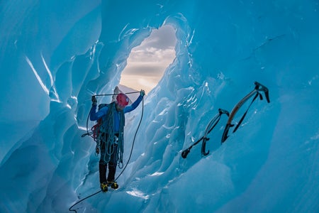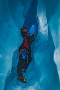Adventurer Tori Harp (@toriharpimages) works as a glacier guide in New Zealand. “As a glacier guide, I spend a lot of my time outdoors in the elements taking whatever nature decides to throw at me,” she explains. “Photography came secondary to my love for adventure and I have simply integrated it into my excursions. I don’t use any fancy camera bags, I just use whichever pack suits for the adventure I am on, whether that be ice climbing, a multi-week backcountry hunt, or a day out skiing.”